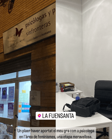 Trabajé en organizaciones como Psicólogos sin Fronteras en València. Aquí aprendí lo que era trabajar en sesión acompañando a niños en riesgo de exclusión social. Formándome en perspectiva de género y migraciones.